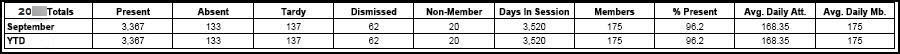 Note: Present + Absent + Non-member = Days in Session